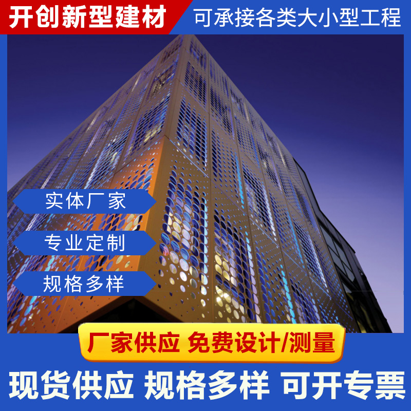 查看更多定制拉網鋁單板/木紋鋁單板/幕墻鋁單板/鋁方通系列/沖孔鋁單板/雕花鏤空板/長城鋁單板/異形天花定制/圓柱鋁單板等產品