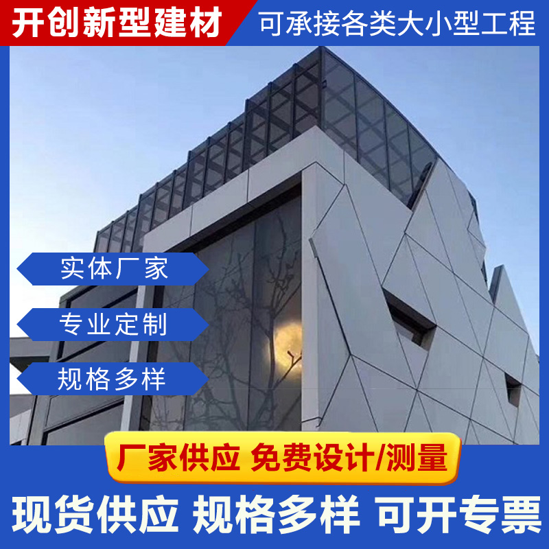 山東開創新型建材有限公司是拉網鋁單板、木紋鋁單板、幕墻鋁單板、鋁方通系列、沖孔鋁單板、雕花鏤空板、長城鋁單板、異形天花定制、圓柱鋁單板等產品專業生產加工的公司,擁有完整、科學的質量管理體系。本公司的誠信、實力和產品質量獲得業界的認可。 山東開創新型建材有限公司是專業從事“幕墻鋁單板,鋁方通等建筑裝飾材料”研發,生產,銷售,安裝及技術服務于一體的現代型企業。鋁方通是最近幾年出現的新型裝飾材料,它具有輕質、耐水、不吸塵、抗腐蝕、易擦洗、易安裝、立體感強、色彩柔和和美觀大方等特點,深受用戶的歡迎。高邊鋁方通是采用鋁合金板材為基材,再經過數控折彎等技術成型,表面噴涂裝飾性涂料的一種新型幕墻材料。…
